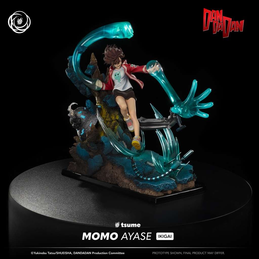 Statue Momo Ayase de la collection Ikigai par Tsume Art. Édition limitée à 800 exemplaires, 40cm de hauteur. Une pièce premium officielle du manga Dandadan.